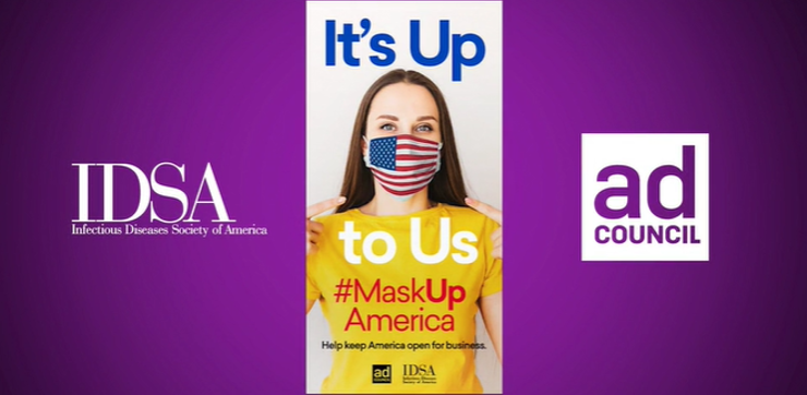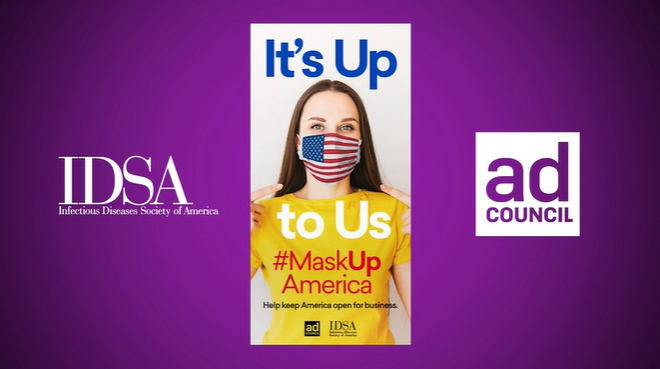 The “Mask Up, America” campaign, which encourages people to wear face masks to stem the ongoing spread of COVID-19, has reached tens of millions of Americans in the past six months. The ads have appeared on digital platforms and social media, in bus stops, gas stations, restaurants, bars and other public areas nationwide. In addition, IDSA board members recently participated in nearly 100 television interviews publicizing the effort.
