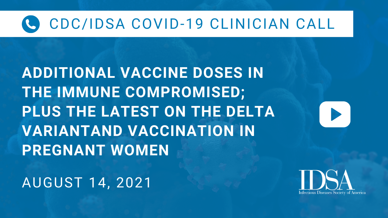 CDC/IDSA COVID 19 Clinician Call: Additional Vaccine Doses in the Immune Compromised; Plus the Latest on the Delta Variant and Vaccination in Pregnant Women