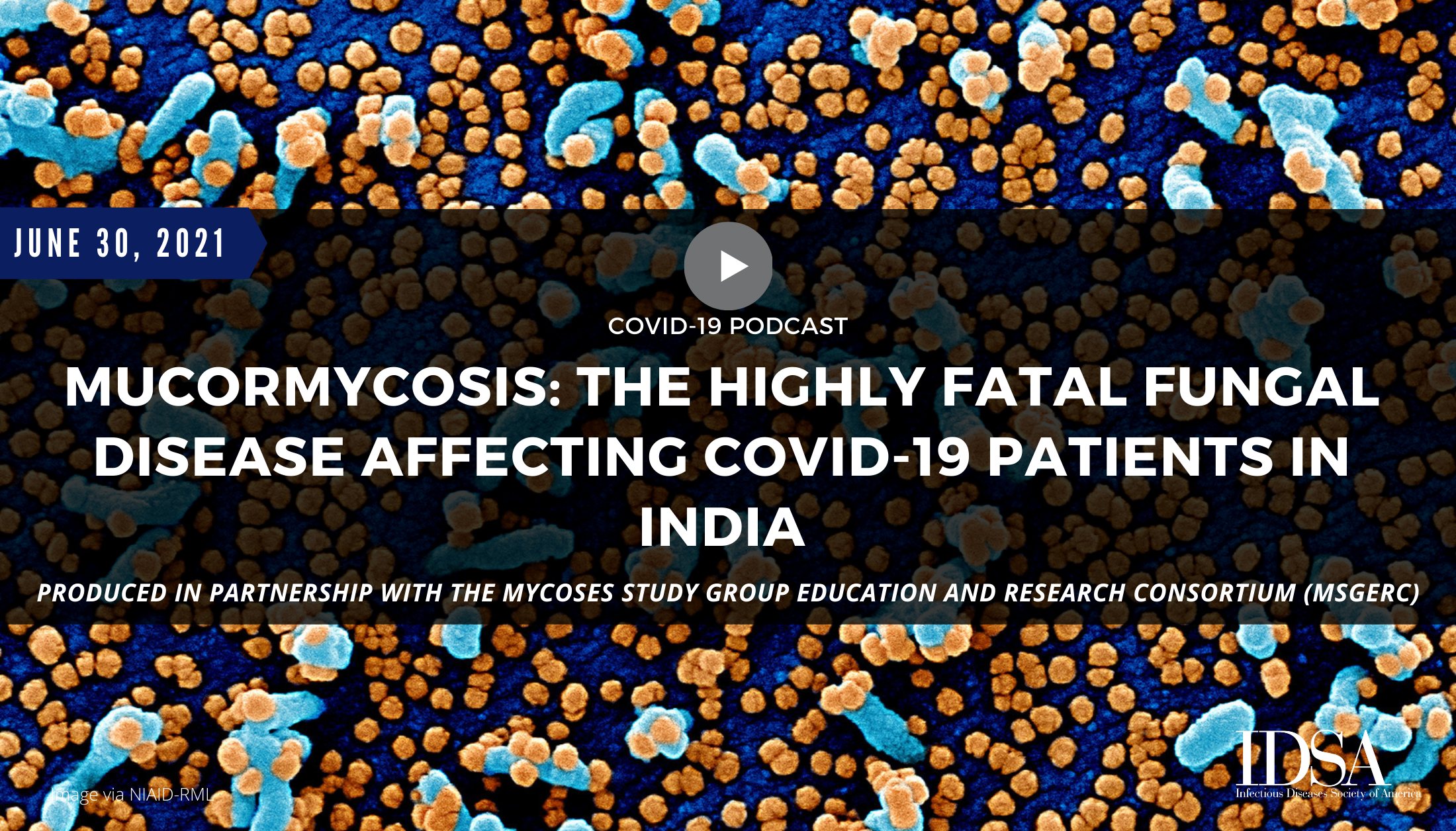 In this episode, produced in partnership with the Mycoses Study Group Education and Research Consortium (MSGERC), we discuss Mucormycosis: the deadly fungal infection affecting COVID-19 patients in India with IDSA and MSGERC members, Ilan Schwartz, MD, PhD, Assistant Professor in the Division of Infectious Diseases at the University of Alberta, and Andrej Spec, MD, MS, Associate Director of the Infectious Diseases Clinical Research Unit, Director of the Invasive Mycoses Clinic, and Assistant Professor of Medicine in the Division of Infectious Diseases at Washington University School of Medicine in St. Louis.