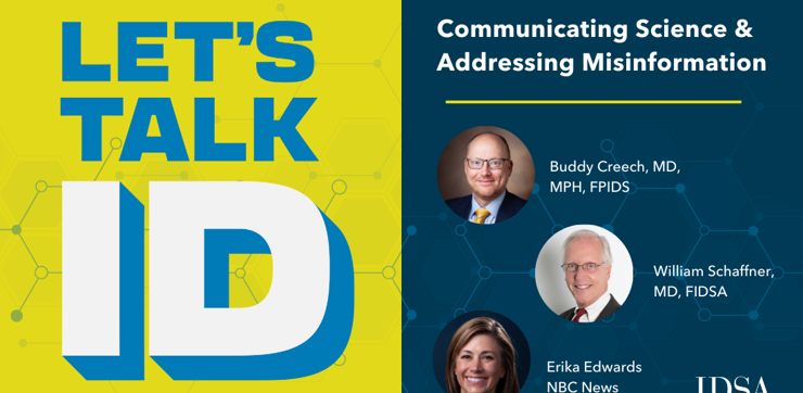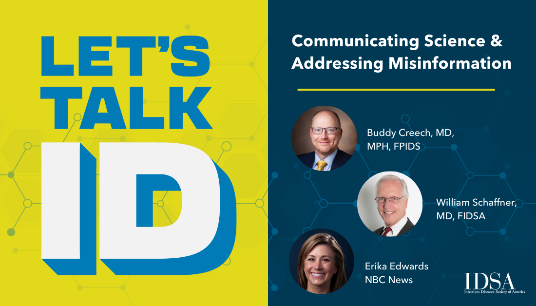 Buddy Creech, MD, MPH, FPIDS, sits down with guests William Schaffner, MD, FIDSA, and NBC News medical correspondent Erika Edwards to discuss how ID practitioners can be better communicators.