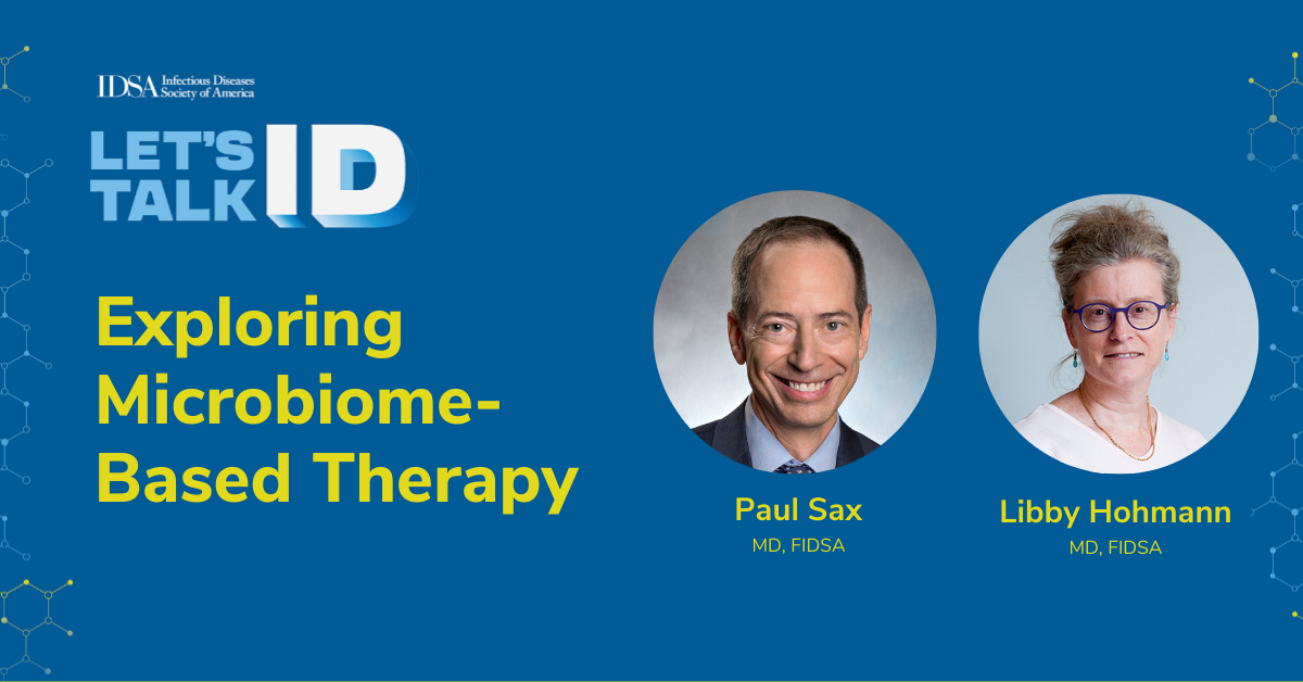 Host Paul Sax, MD, FIDSA, is joined by Libby Hohmann, MD, FIDSA, an ID specialist at Massachusetts General Hospital, director of the Fecal Microbiota Transplant Lab and associate professor of medicine at Harvard Medical School, to discuss the innovative field of microbiome-based therapy, including the latest therapeutics, efficacy in treating COVID-19 and advice on treating patients with C. diff.
