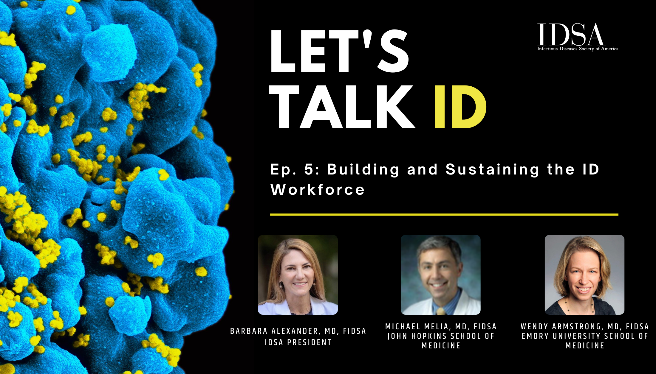 Is the “Fauci effect” enough to attract the number of doctors needed into the field of ID? In this episode, IDSA President Barbara Alexander, MD, FIDSA is joined by Wendy Armstrong, MD, FIDSA of Emory University School of Medicine and Michael Melia, MD, FIDSA of Johns Hopkins School of Medicine to discuss the current state of the ID Match and IDSA’s efforts to address recruitment into the field as well as it’s mentorship and professional development efforts.