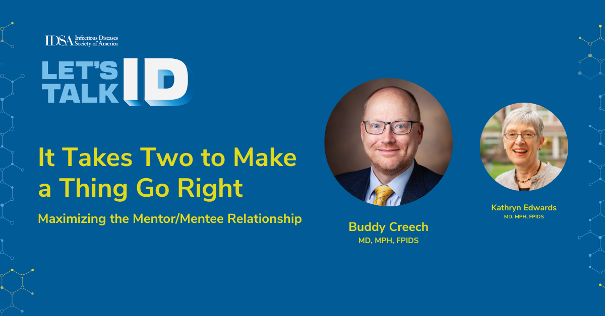 Twenty years ago, Buddy Creech, MD, MPH, FPIDS became a pediatric infectious diseases fellow under mega-mentor Kathryn Edwards, MD, FIDSA, FPIDS. In this episode, Dr. Creech is joined by his former mentor to discuss their story, the dynamics of a successful mentee and mentor relationship, and how to mentor trainees in the best way possible.