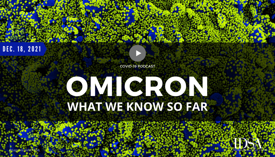 In this episode recorded on December 13th, IDSA President-Elect Carlos del Rio, MD, FIDSA and IDSA Public Health Committee Chair Julie Vaishampayan, MD, FIDSA share what the medical community knows thus far about the Omicron variant, including its impact on current COVID-19 treatments and why testing plays a key role.