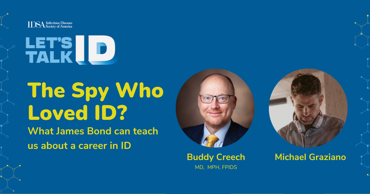 Buddy Creech: [00:27:35] This is amazing, I love this. You know what, I will take you at your word and I will gladly receive any and all emails that we can then connect dots with. Because I think this is important. I think we have an opportunity to really make a difference and to move the needle in how we do things in infectious diseases. And Michael, I'm grateful that you're a part of that community. So we're grateful. We will look forward to meetings where this is shown. I'm not saying that when you screen this, that you should dress in a really nice European suit and have a great laser watch on, but it wouldn't be a terrible idea, so we'll look forward to those times. Well, I appreciate it. We're grateful for the time. If you have any questions about what IDSA and PIDS are doing as it relates to the Pasteur Act, the issues around antibiotic resistance, or if you want to hear more about screening these films, come to the IDSA website. Contact me personally. And until next time, this is Let's Talk ID. Thanks for joining us. Let's Talk ID is produced by the Infectious Diseases Society of America, and it's edited and mixed by Bentley Brown.