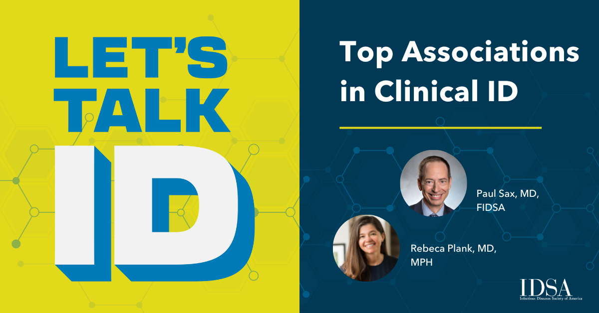 Paul Sax: [00:00:00] Hi, this is Paul Sax. I'm the editor-in-chief of Clinical Infectious Diseases. And this is the Let's Talk ID podcast brought to you by the Infectious Disease Society of America, or IDSA. Now joining me today is my longtime friend and colleague, Dr. Rebeca Plank. Rebecca, welcome.