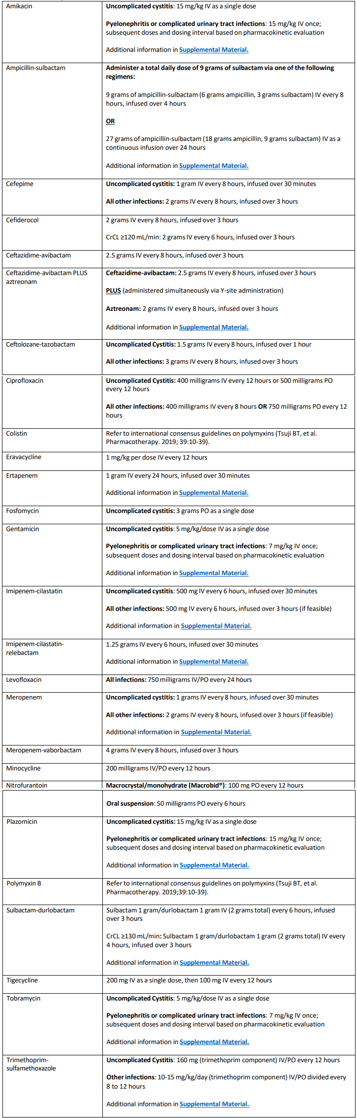 Table 1. Suggested dosing of antibiotics for the treatment of antimicrobial-resistant infections in adults, assuming