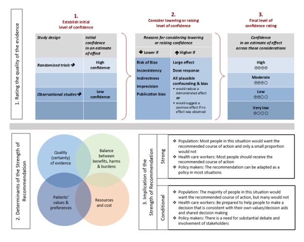 Figure 1. Approach and implications to rating the quality of evidence and strength of recommendations using GRADE methodology (unrestricted use of figure granted by the U.S. GRADE Network)