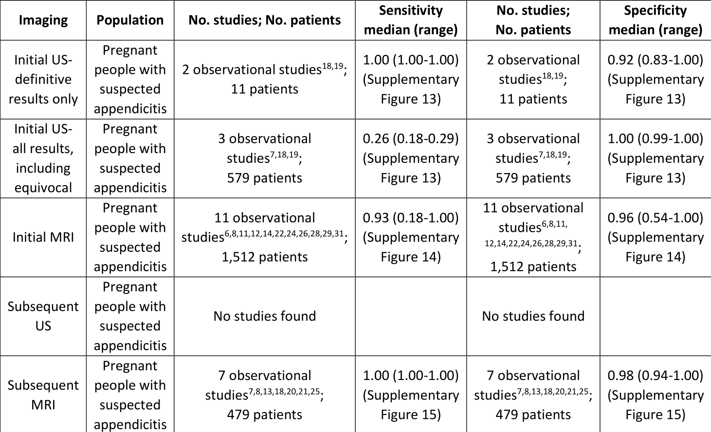 Summary of Evidence for Imaging Modalities Compared to Pathology for Diagnosing Acute Appendicitis in Adults