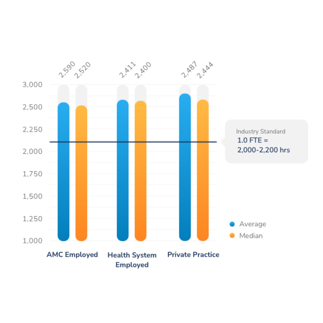 Most full-time ID physicians work more than 2,300 annually. Compared to a standard definition of a 1.0 FTE (2,000 hours), ID physicians at the median appear to be working as much as 30% more than their non-ID peers.