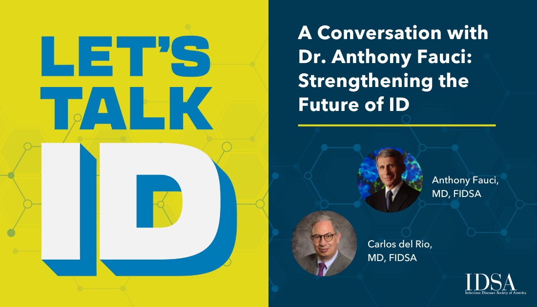 In the latest episode of IDSA’s “Let’s Talk ID” podcast, IDSA President Carlos del Rio, MD, FIDSA, talks with Anthony Fauci, MD, FIDSA, who is stepping down in December after nearly 40 years as the director of the National Institute of Allergy and Infectious Diseases at the National Institutes of Health.