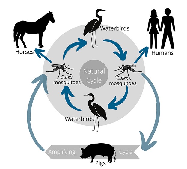 The life cycle of this virus involving humans, mosquitoes, birds, pigs and sometimes horses appears below from another Australian government website: