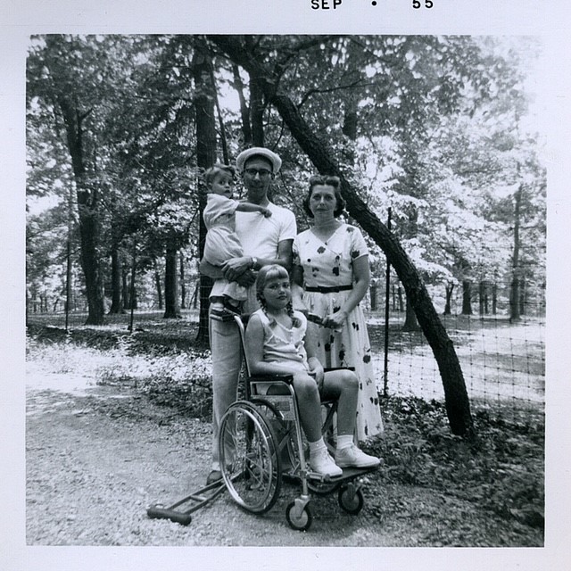 My dad drove me to a pool twice a week for swimming exercise. Together with my best friend, Arlene, self-appointed helper and wheelchair driver, there wasn’t anything we thought I couldn’t do, so I just kept pushing the envelope of challenging myself to keep up with my peers. By the time I was leaving for high school, I was walking and climbing stairs well with crutches and without braces.