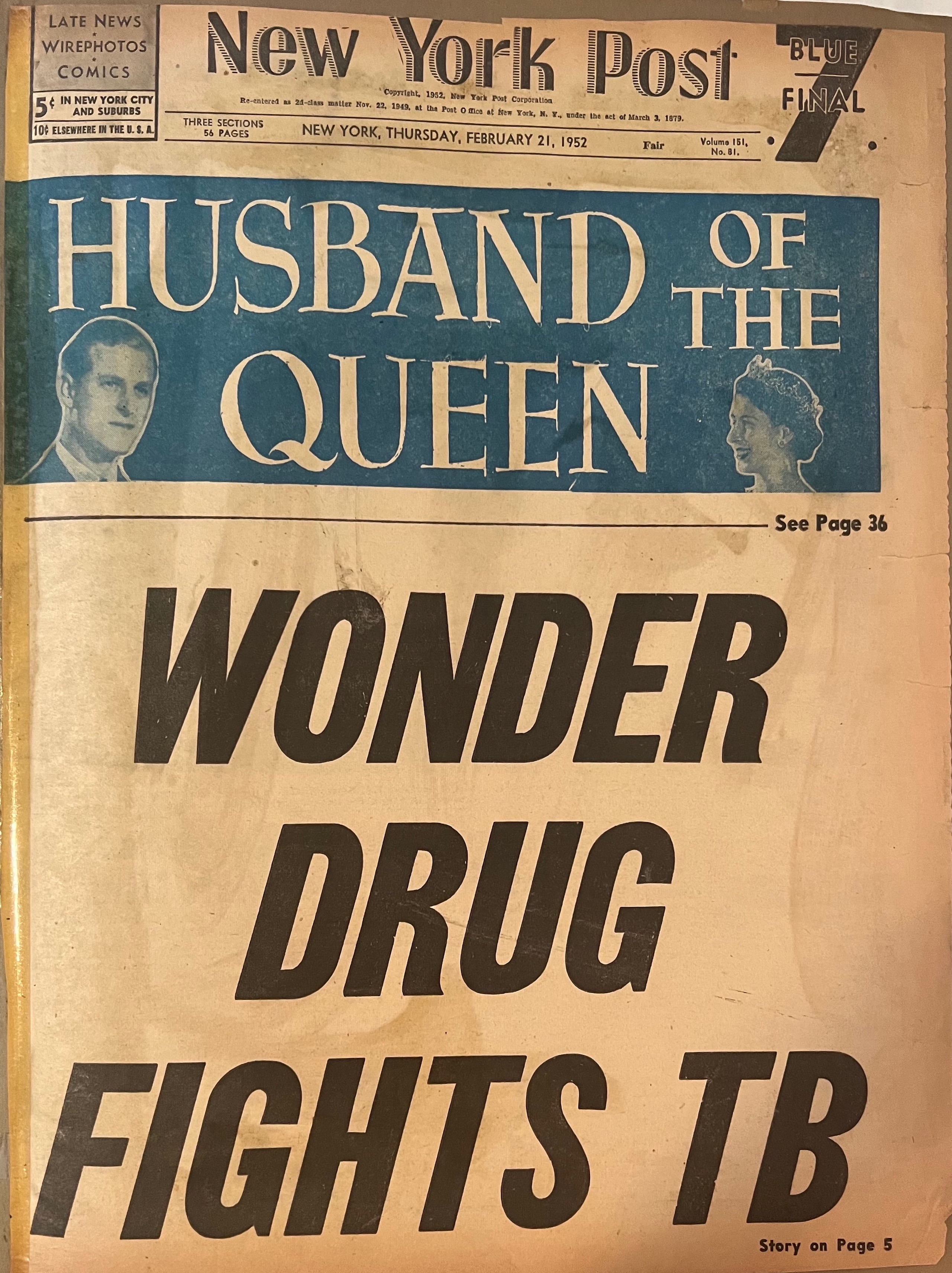Photo: The front page of the Feb. 21, 1952, New York Post reported the encouraging results of the TB drug trial at Sea View.