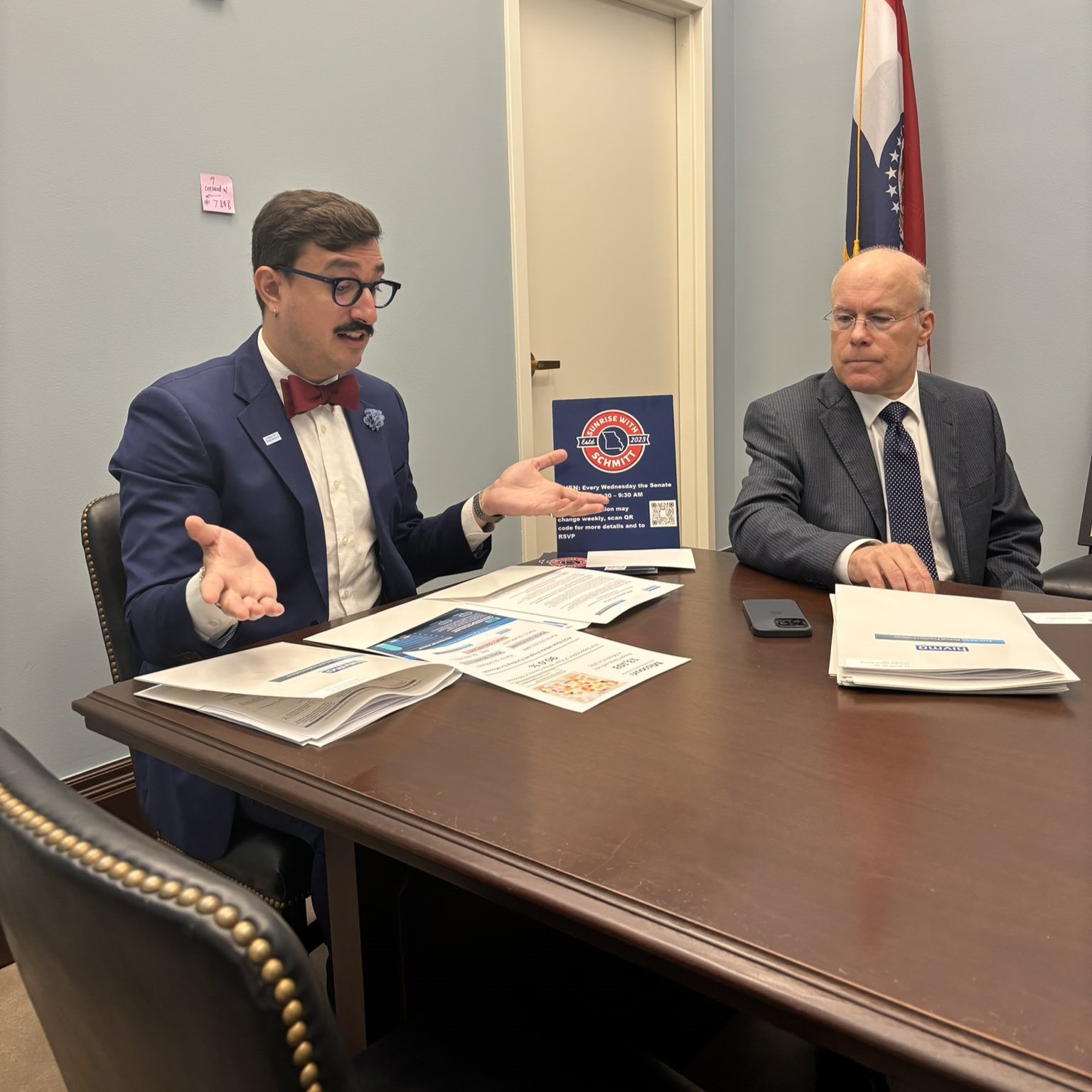 Photo: As part of IDSA’s and HIVMA’s 2024 Advocacy Day, Joseph Cherabie, MD, MSc, at left, spoke with staff in congressional offices about the importance of adequately funding federal HIV programs.