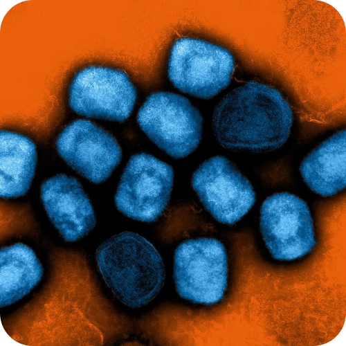 Image: Colorized transmission electron micrograph of mpox virus particles (blue) cultivated and purified from cell culture. Image captured at the NIAID Integrated Research Facility in Fort Detrick, Maryland. Credit: NIAID
